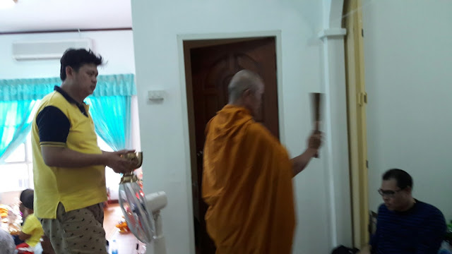 ไปพรมน้ำมนต์ให้กับแขกที่มาร่วมงานและเจิมมงคล